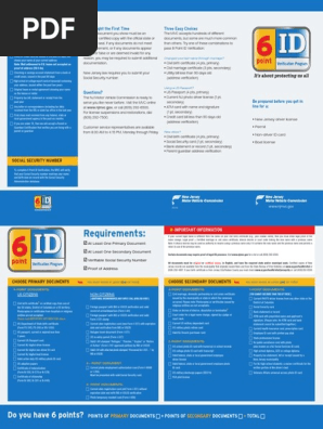 Possible identifying documents are each worth a certain number of points under the terms of the states code. Visit the selected Motor Vehicle. The goal is to achieve 6 points through four possible types of documents.