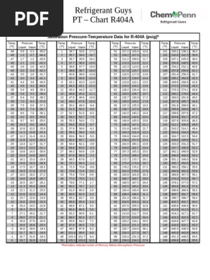 Saturation Pressure-Temperature Data for R-404A psig Pressure Pressure Pressure Pressure Refrigerant Guys PT Chart R404A Refrigerant Gases.