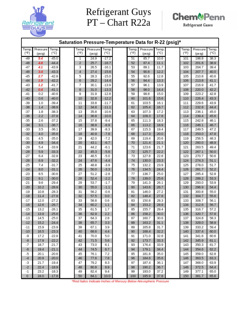 R-404A Refrigerant Pressure Temperature Chart. R-22 Low Side Pressure2. 150F 656C 3817 psig.