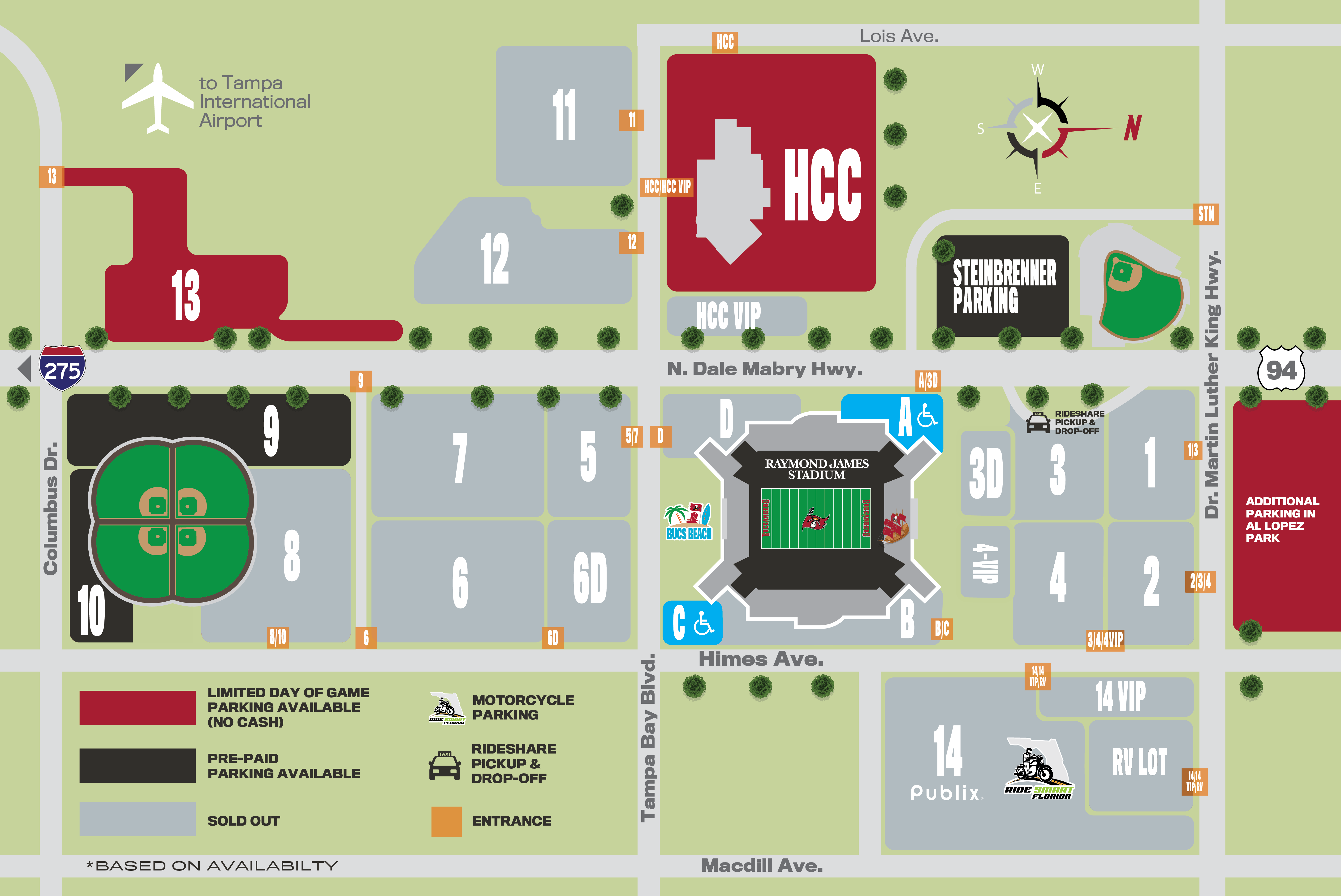 The stadium was constructed with an estimated cost of 1685 million dollars and has a capacity of 65857. Tampa Bay Buccaneers VIP tickets in Charlotte. Our staff wanted to provide a thorough breakdown of the Raymond James Stadium seating chart to help football fans decide where to sit before purchasing their Tampa Bay Buccaneers tickets.