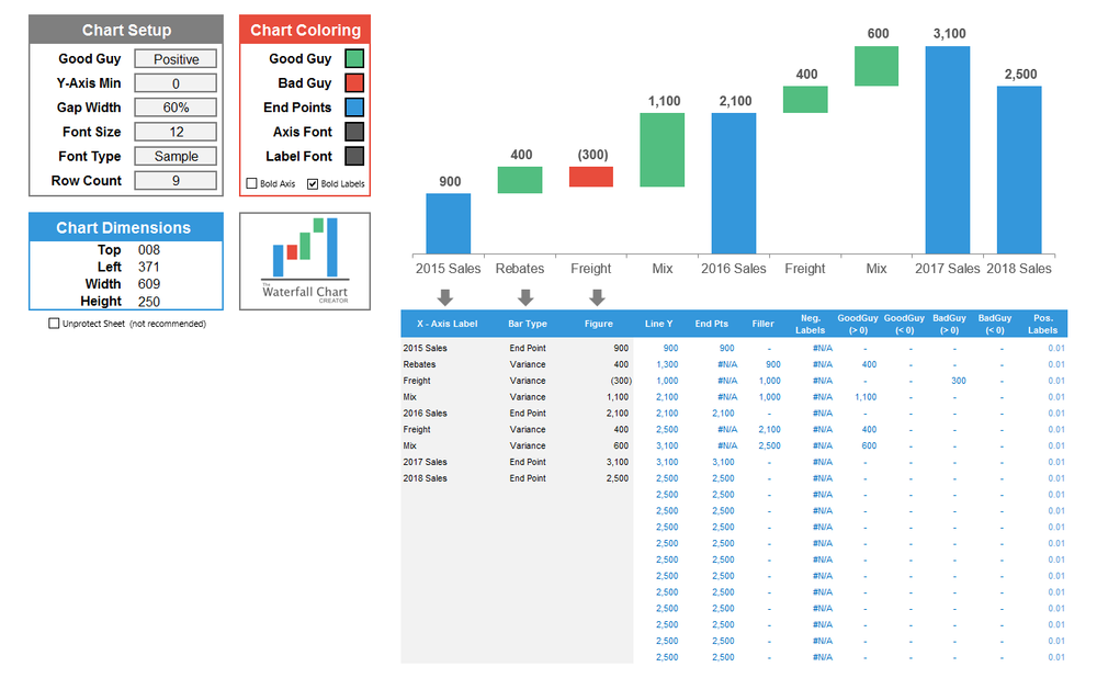 Waterfall chart excel template. A simple way to create a waterfall chart in Microsoft Excel - by Jon Wittwer 4152015. Create stunning and interactive Waterfall charts with this Excel template with just ONE click. Hide Series Invisible Step 4.
